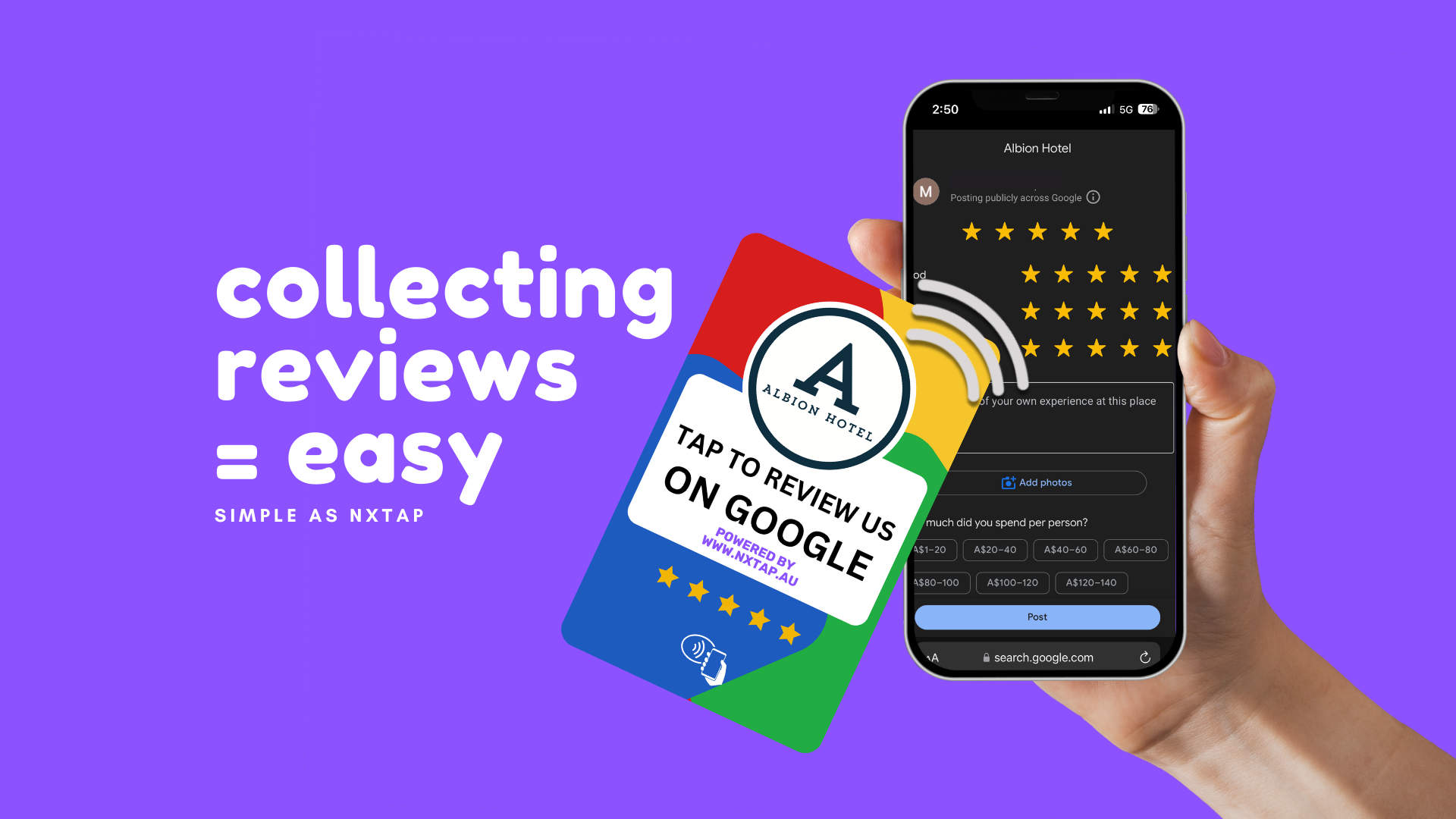Did you know 78% of Aussies don't trust businesses that are under 4 stars (Venticinque, 2021)? Increase your rating with NXTAP.